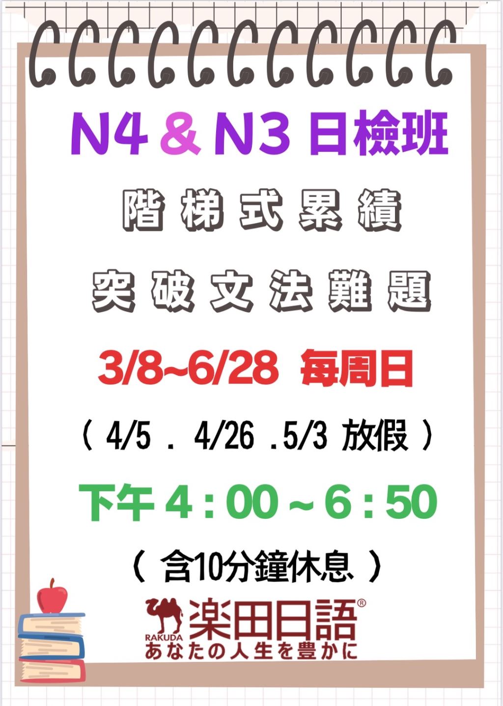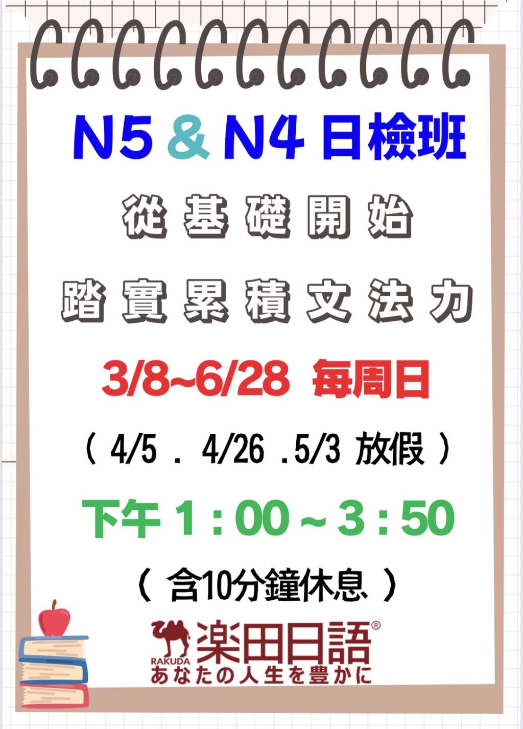 3/8起,週日將開設N5&N4日檢班與